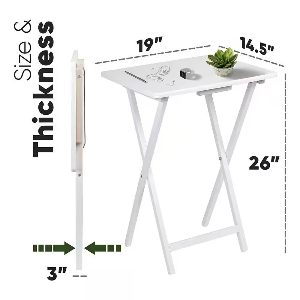 Set of 2 - Folding TV Tray Table in White Wood Finish Set of 2 - Folding TV Tray Table in White Wood Finish Set of 2 - Folding TV Tray Table in White Wood Finish