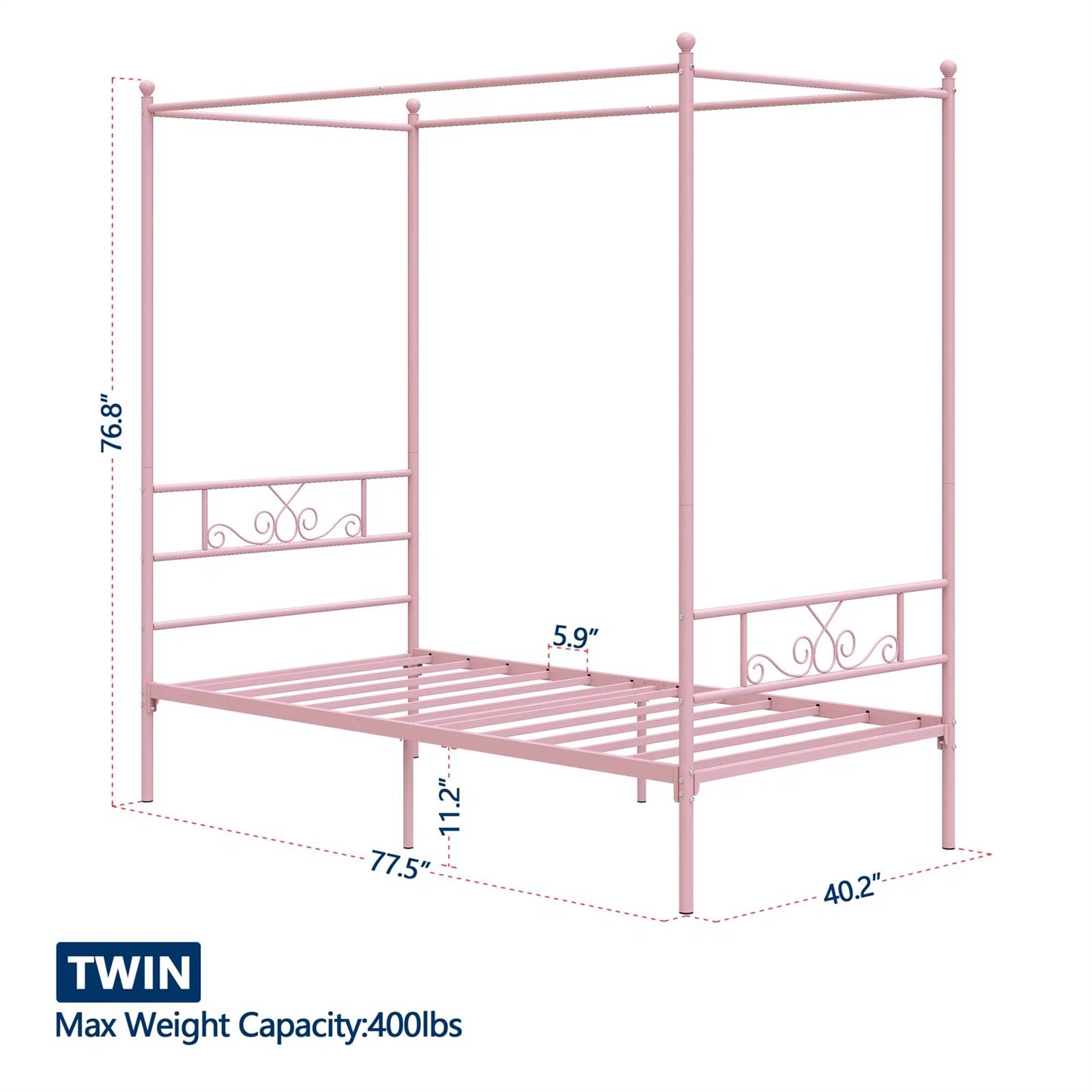 Twin size French Country Style Four Poster Metal Canopy Bed in Pink Finish Twin size French Country Style Four Poster Metal Canopy Bed in Pink Finish Twin size French Country Style Four Poster Metal Canopy Bed in Pink Finish Twin size French Country Style Four Poster Metal Canopy Bed in Pink Finish Twin size French Country Style Four Poster Metal Canopy Bed in Pink Finish