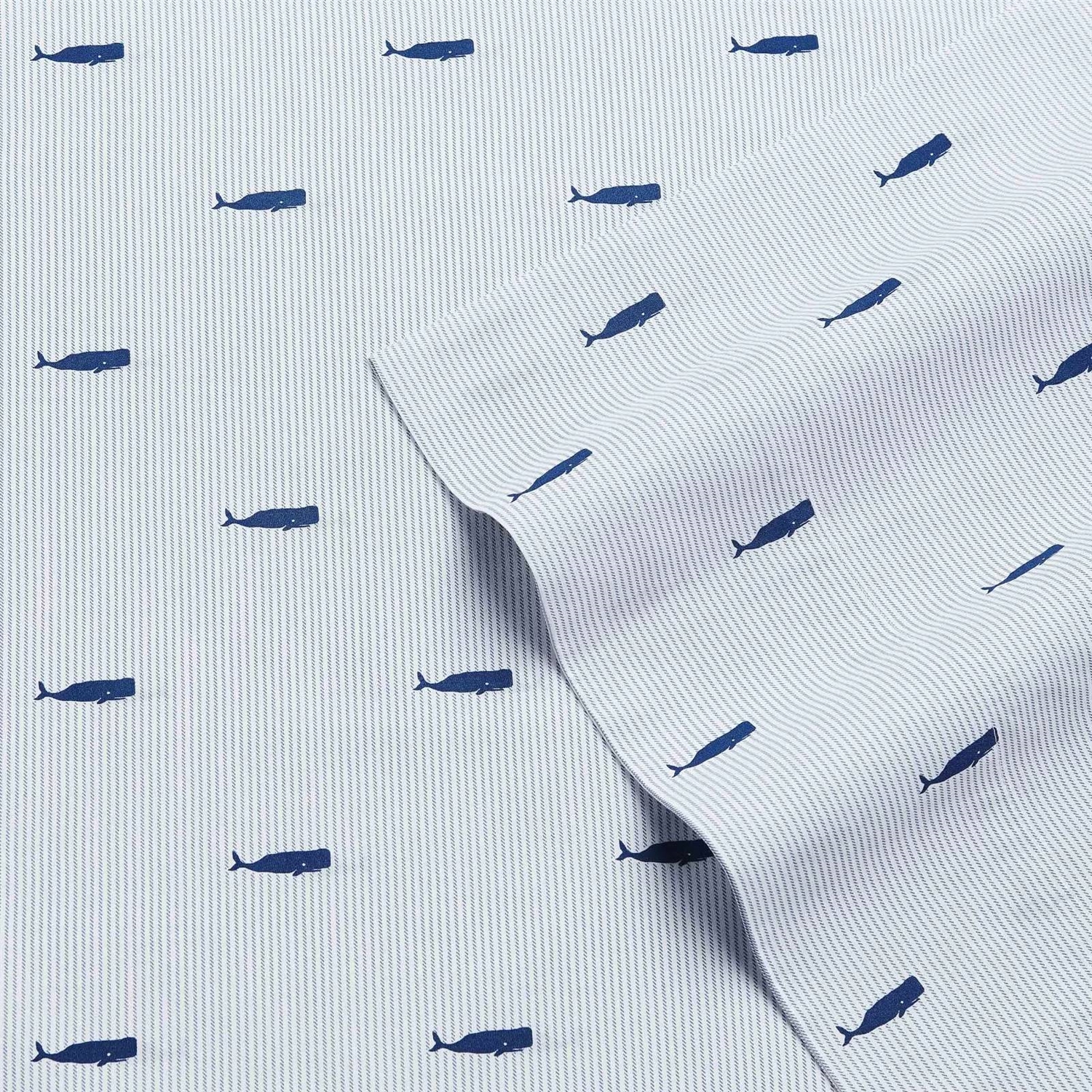 • Twin size Coastal Beach 100-Percent Cotton Navy Blue White Stripe Sheet Set