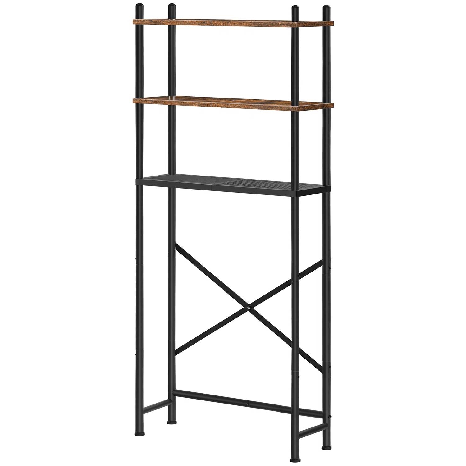 This Industrial Metal Wood Style Over the Toilet Freestanding Storage Shelving Unit is specifically designed to fit over most toilets, making full use of the vertical space and offering additional storage options.With 3 open shelves, you can easily organize your bathroom essentials such as towels, toiletries and other accessories. The shelves are made of durable materials and can support a significant amount of weight, ensuring that your items are secure and stable.