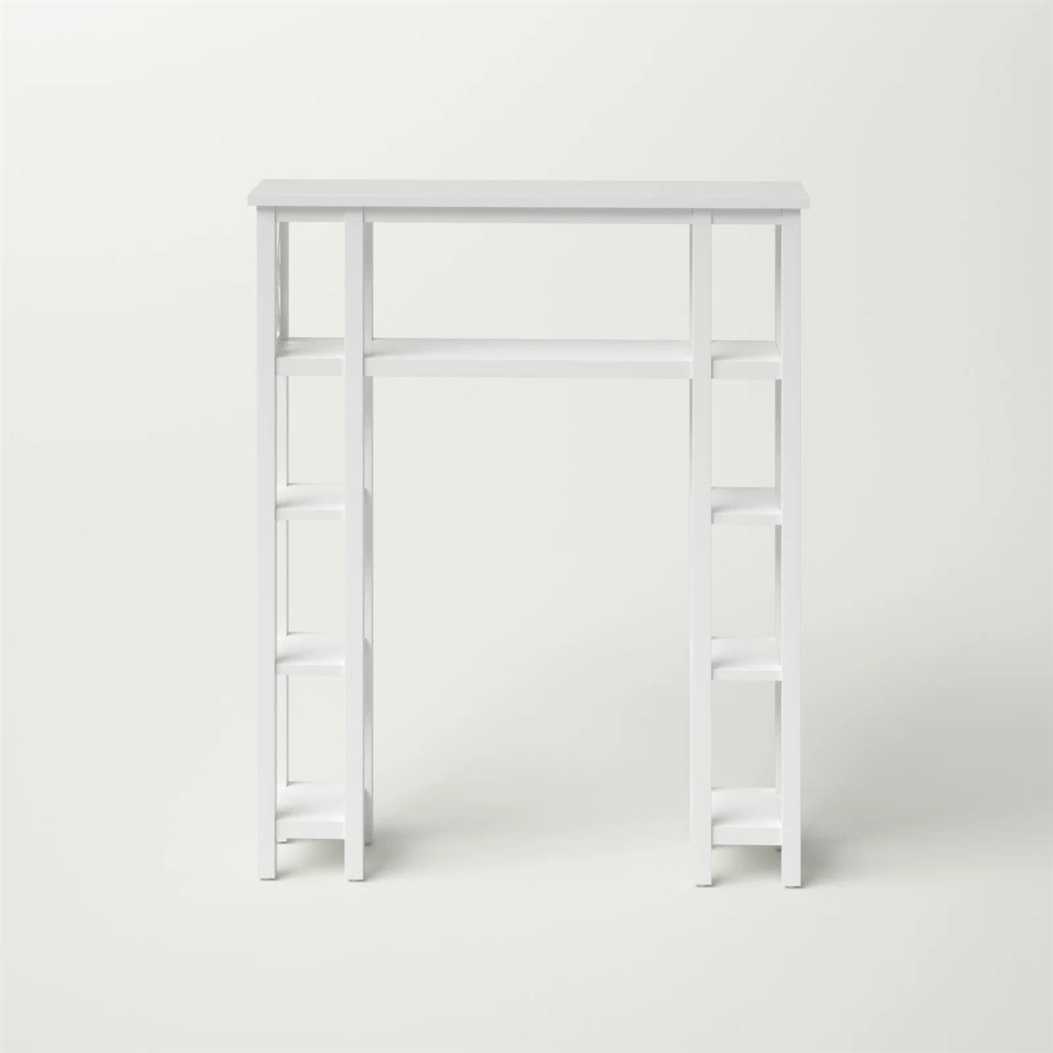 • Over the Toilet Bathroom Shelving Unit with 9-Shelves in White Wood Finish
