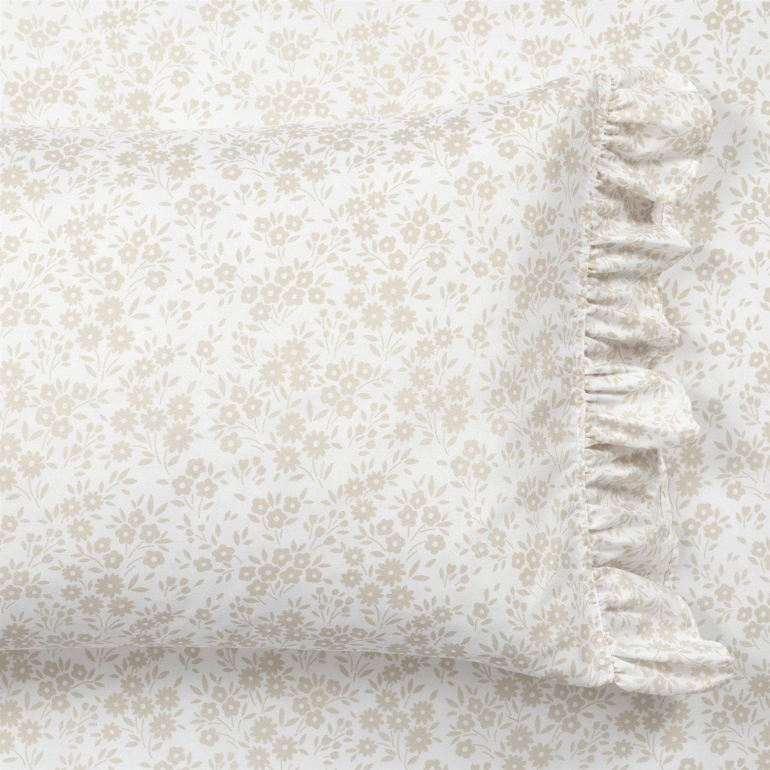 Peacefully drift off to sleep night after night with this serene bedding sheet set. The soft fabric and peaceful print featured on this Garden Of Flowers Ruffle Sheet Set romanticize your bedroom with floral designs and textured ruffles. This sheet set includes a flat sheet, fitted sheet and matching pillowcases. Your bedroom should reflect your character and create a placid environment for soothing rest. This coquette styled Garden Of Flowers Ruffle Sheet Set captures a traditional look with soft colors and textured ruffles. Though this is a printed sheet set, the very light brush of pattern lets you coordinate with any bedding of your choice. A farmhouse or cottagecore home is not complete without floral prints, and this Garden Of Flowers Ruffle Sheet Set will fit right into your cozy home. The flat sheet is edged on one side with a 4-inch ruffle detail, as are the openings to each pillowcase. Each pillowcase opens on the ruffled side to easily slip your pillows inside. This feminine frilly Garden Of Flowers Ruffle Sheet Set set will help complete the look of your bed for a designer styled look. Pair it with your favorite quilt, comforter or bedspread set. The simple yet classic style is ideal for many decorating themes, including traditional, shabby chic, vintage, cottagecore, farmhouse and more. This Garden Of Flowers Ruffle Sheet Set comes complete with the flat sheet, a fitted sheet, and 4 pillowcases. The flat sheet and the pillowcases each have one edge of ruffles for a beautiful look and added texture. Conveniently, this Garden Of Flowers Ruffle Sheet Set is safe to machine wash and tumble dry. Follow all care instructions on the label to maintain the integrity of the ruffles and for long lasting use.