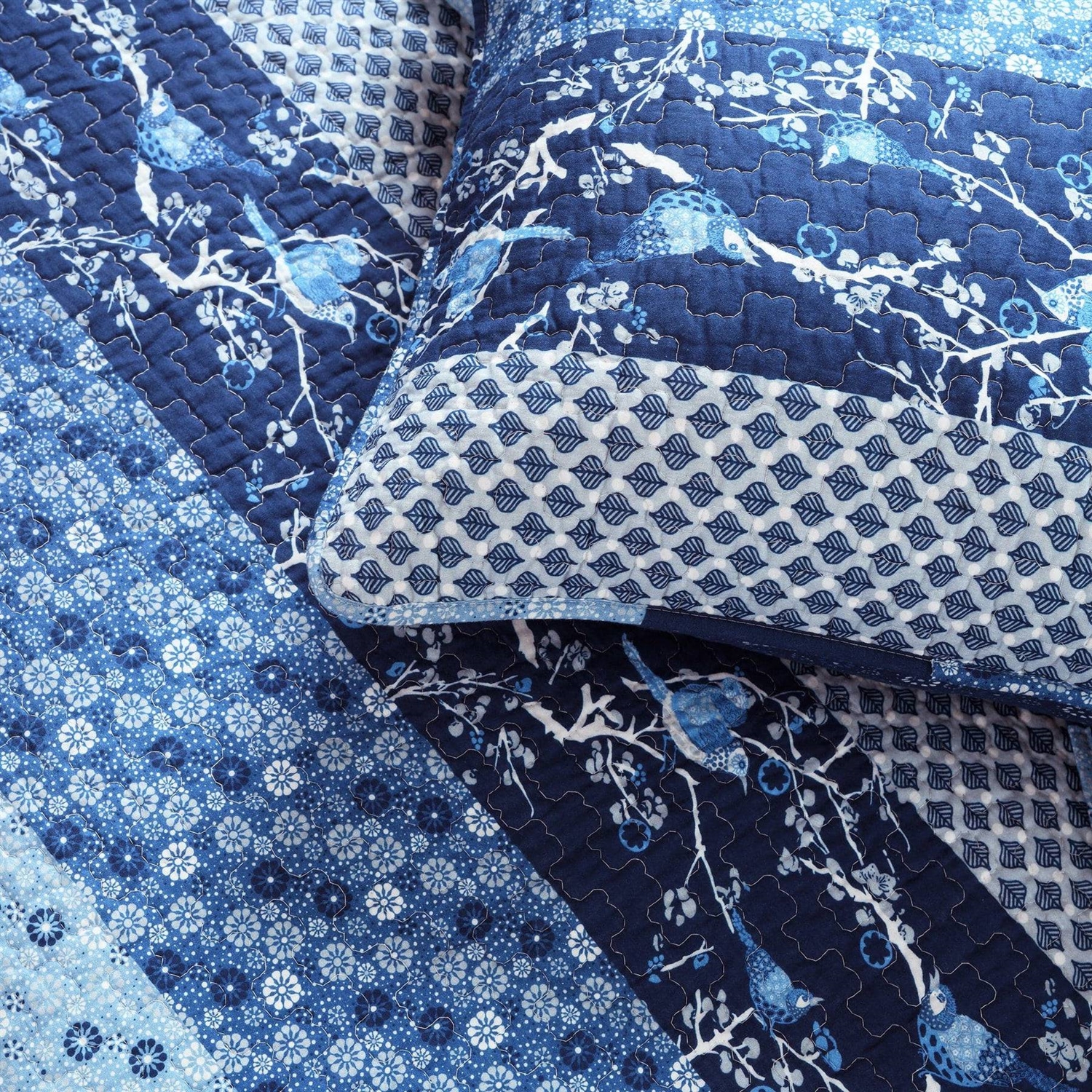 Full/Queen Navy White Light Blue Boho Floral Birds Reversible Quilt Set Full/Queen Navy White Light Blue Boho Floral Birds Reversible Quilt Set Full/Queen Navy White Light Blue Boho Floral Birds Reversible Quilt Set Full/Queen Navy White Light Blue Boho Floral Birds Reversible Quilt Set