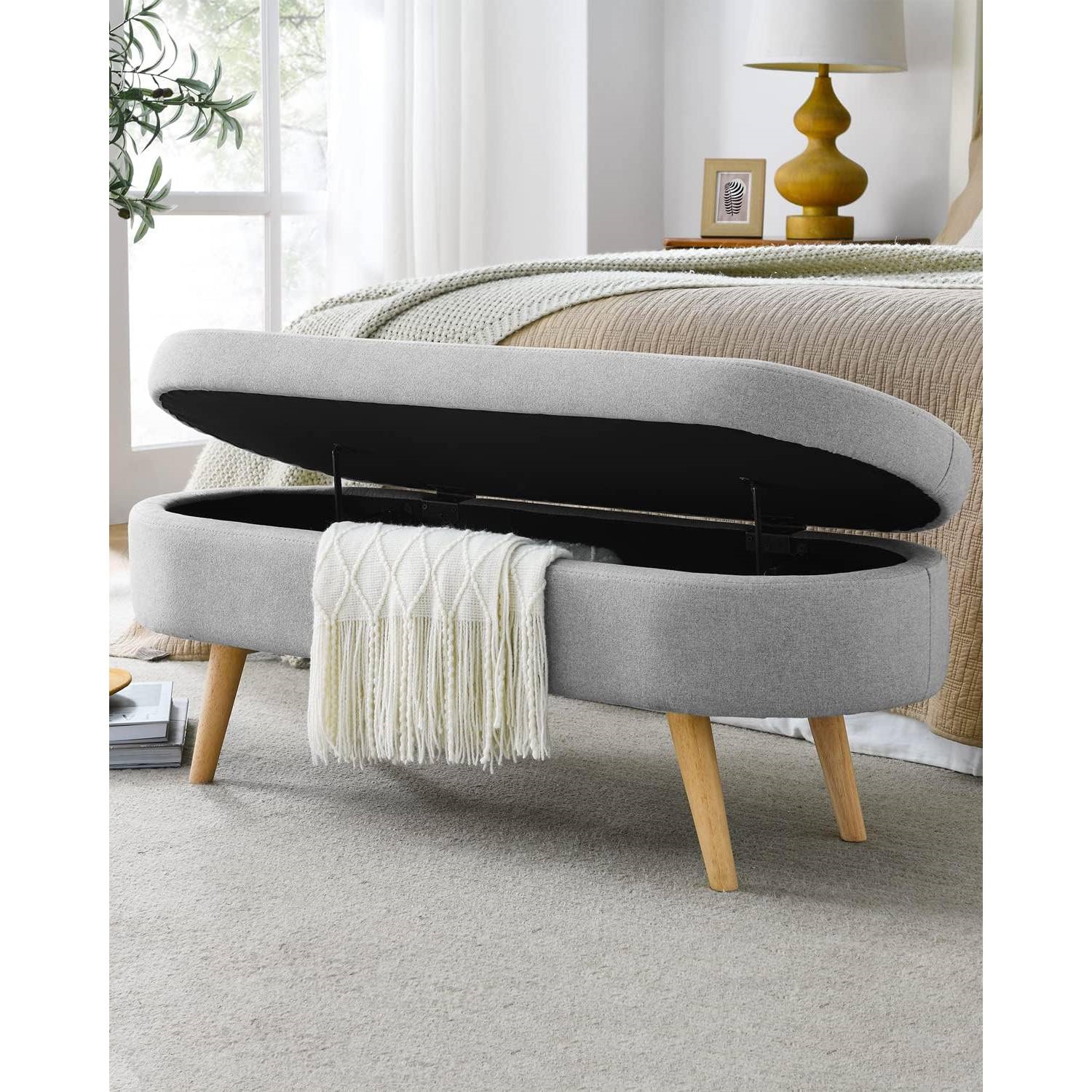 Mid-Century Modern Boho Style Grey Linen Bedroom Storage Bed Bench