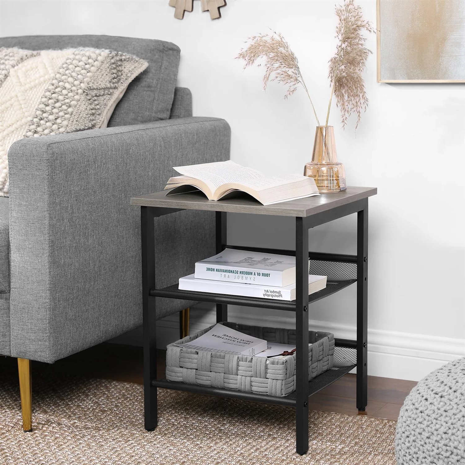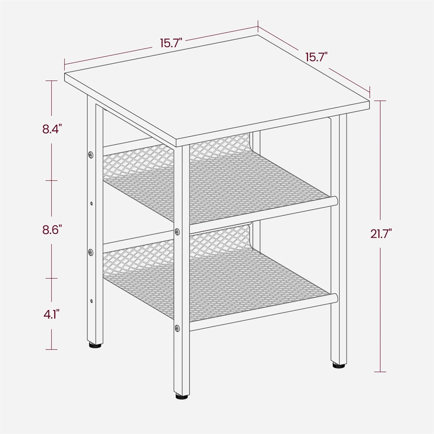 If you’ve been looking for a stylish and competent sidekick for your coffee table, this Modern Industrial Side Table Nightstand in Black Metal with Grey Beige Wood Top may just be the answer. With a rustic brown top and sleek black metal shelves, this end table adds a warm, industrial charm to your room. Water cup and snacks on top, and your books on the 2 shelves below—all your necessities for a relaxing afternoon are within reach now. Use it as a side table in the living room, as a nightstand in the bedroom, or as a printer stand in the home office. No matter how you choose to use it, it works like a charm.