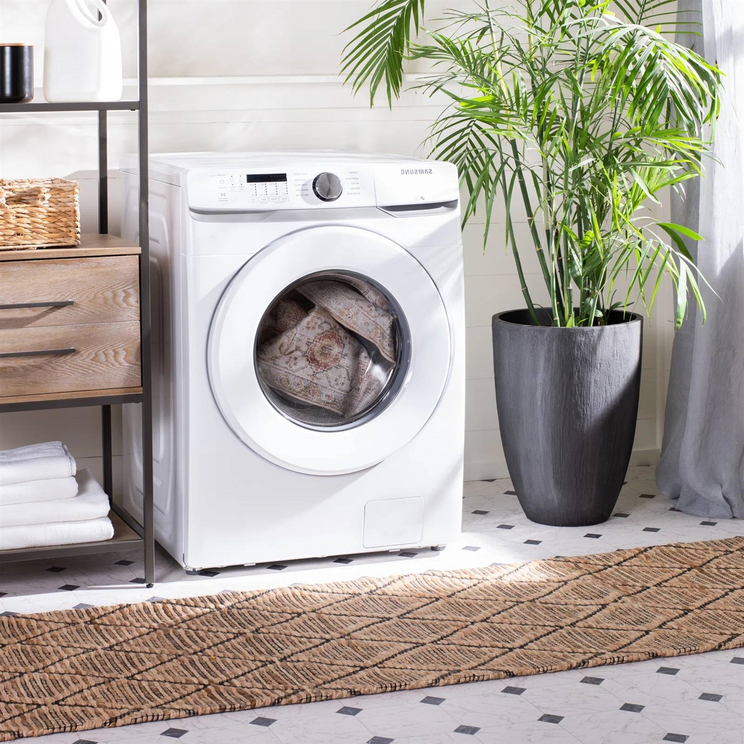 Keep your space fresh and stylish with this 3 ft. x 5 ft. Traditional Persian Style Washable Boho Light Grey Red Area Rug. It's power-loomed from stain-resistant polyester with latex and felt backing – easily toss it in the wash when those inevitable spills happen. The design features a light gray and rust-red repeating medallion print inspired by the style of traditional Oriental rugs. This area rug has an easy-to-vacuum pile height of 0.125'', which makes it ideal for rooms with more foot traffic. A rug pad is recommended.