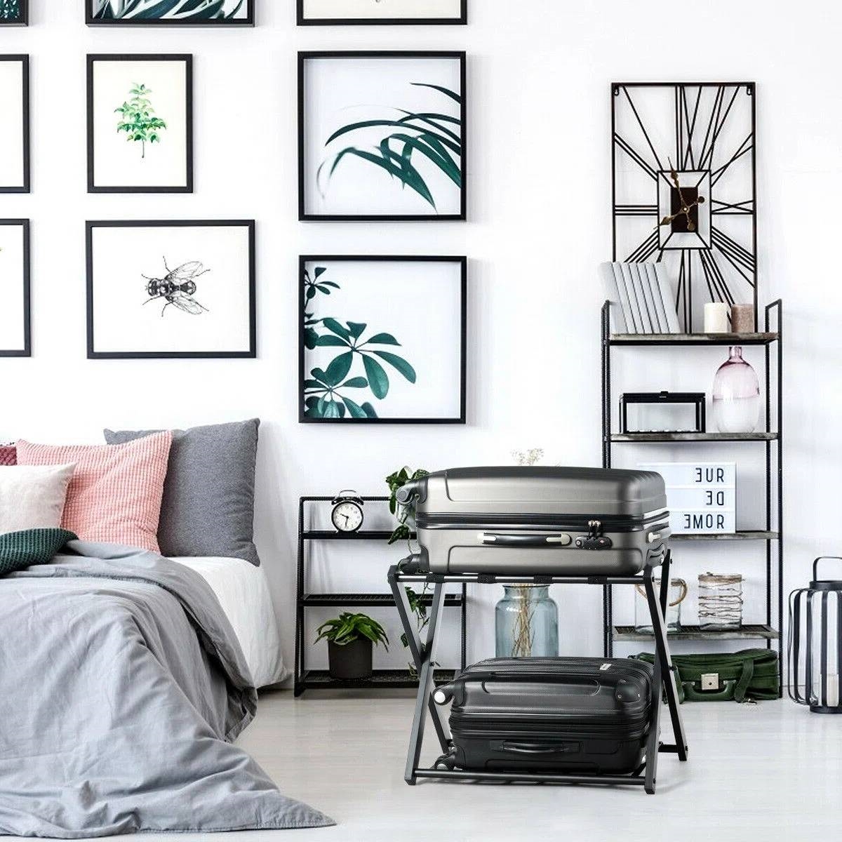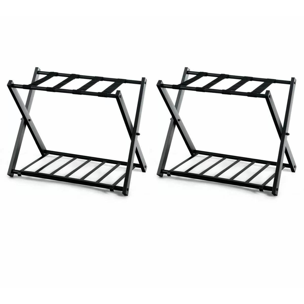 Set of 2 - Folding Black Metal Luggage Rack with Bottom Storage Shelf Set of 2 - Folding Black Metal Luggage Rack with Bottom Storage Shelf Set of 2 - Folding Black Metal Luggage Rack with Bottom Storage Shelf Set of 2 - Folding Black Metal Luggage Rack with Bottom Storage Shelf Set of 2 - Folding Black Metal Luggage Rack with Bottom Storage Shelf