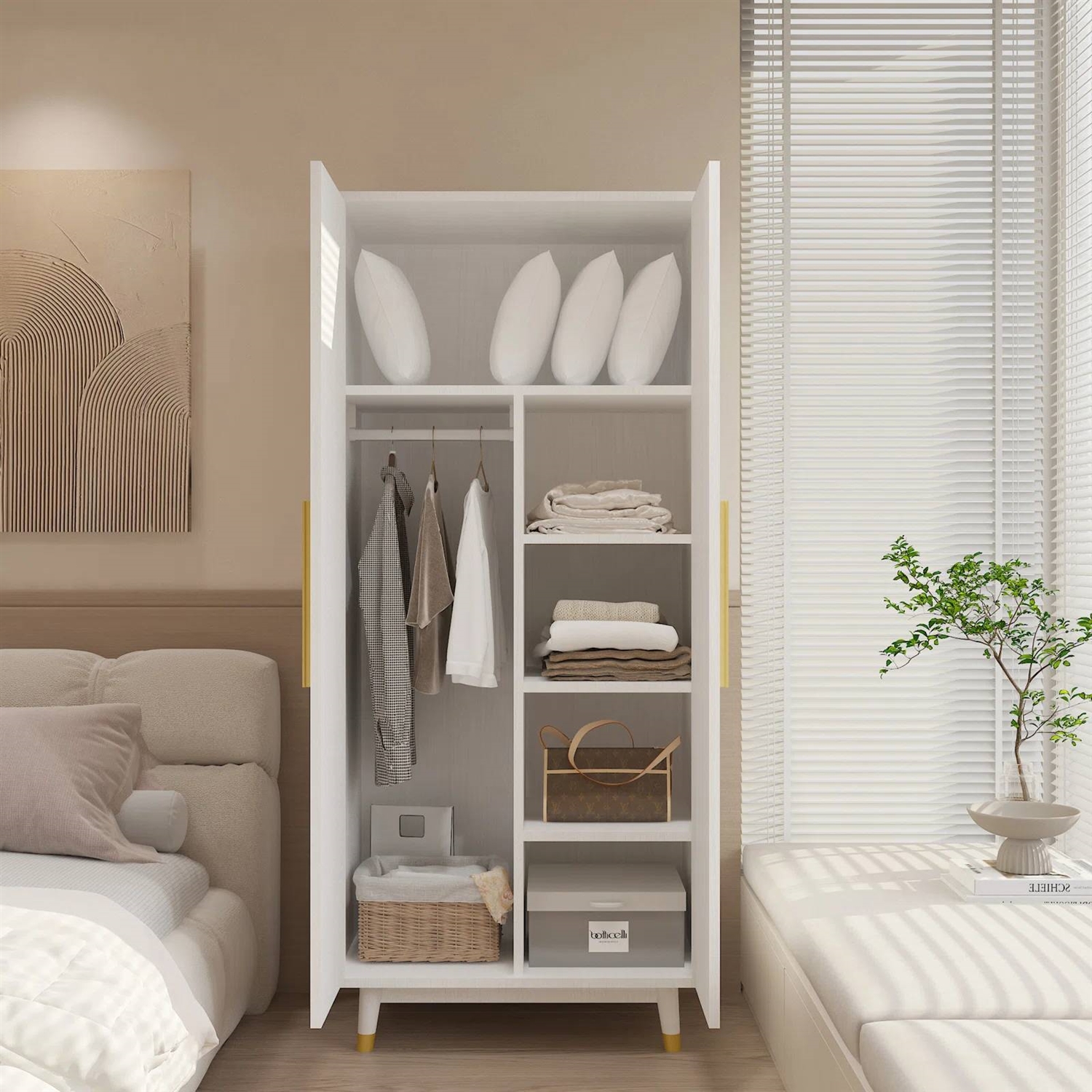 • Compact and practical design: The 2-door configuration maximizes space efficiency while offering a practical solution for organizing your garments. The inclusion of a hanging rod allows you to neatly hang shirts, dresses, and other clothing items, preventing wrinkles and ensuring easy access.