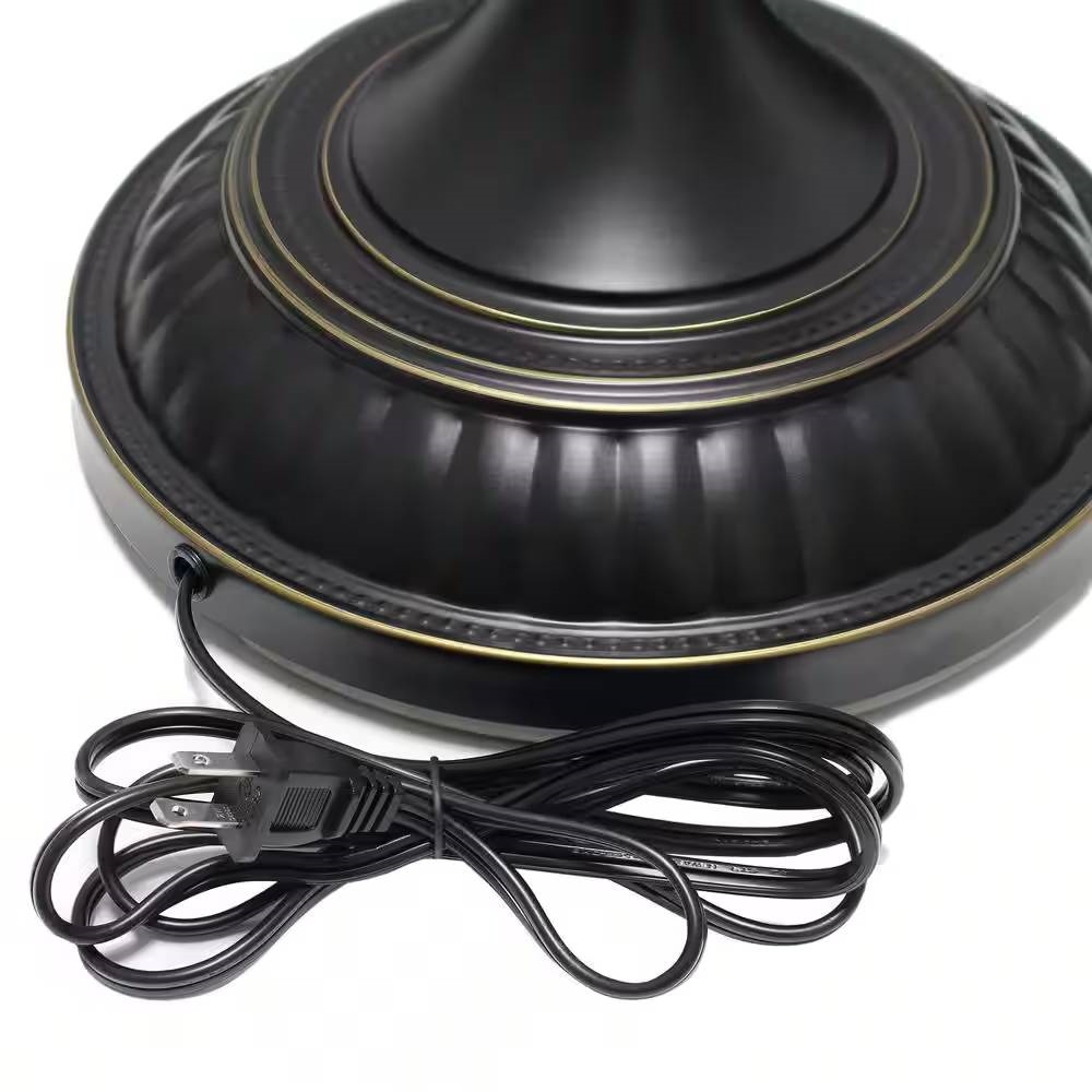 This 71-inch Floor Lamp Torchiere in Bronze Finish with White Marbled Glass Shade has a Bronze Finish and White Glass Shade.It Uses 1 x 100W equivalent 3 way Type A Medium Base Bulb (not included) and is Dimensions; L: 13" x W: 13" x H: 71. Some Assembly is Required.