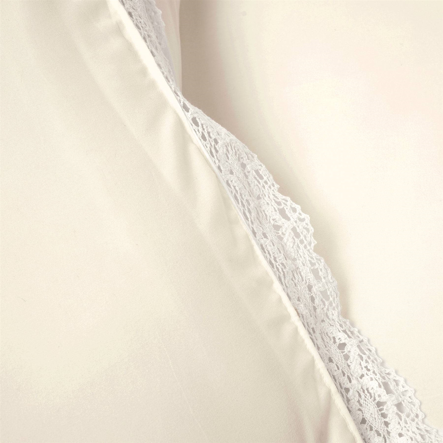 Unwind in style with this Ivory Thin Lace Trim 5 Piece Comforter Set. With its cozy vintage farmhouse charm, this bedding set is simple in design and easy to coordinate and layer for a complete look. The lace detailing adds elegance and a bit of texture to your bedroom design. The lace trim adds lovely flair to an otherwise minimalist look that can also fit into farmhouse, vintage charm, traditional, cottage or French Country themes. This set includes one comforter, two shams and two euro shams. Labeled safe to machine wash and tumble dry.
