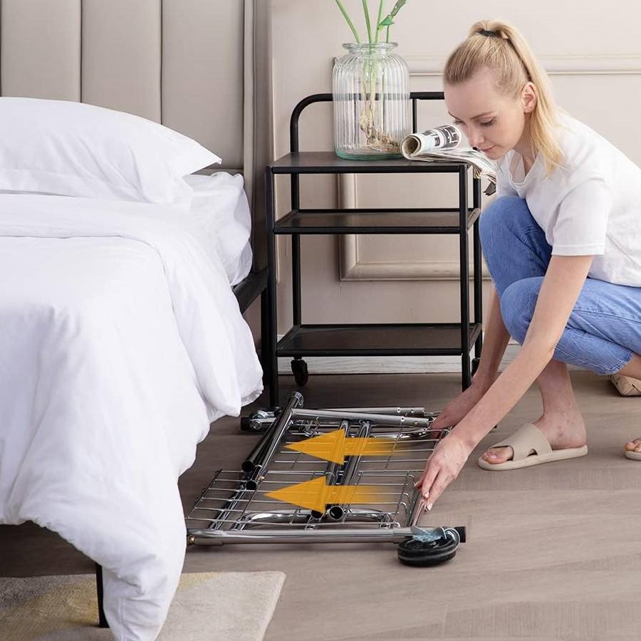 This Heavy Duty Metal Clothing Garment Rack with Lockable Wheels - 450 lbs. Capacity is made of high quality metal with durable chrome coating to enhance protection against water, rust, corrosion & scratch. All-steel heavy duty clothes rack is solid and sturdy to hold up to 450lbs. (250lbs on the hanging rods and 200lbs on the bottom shelves for shoes and luggage storage). It can meet all your extra garment storage needs. Our 3rd Generation rolling clothes rack uses E-shape structure for stronger support. With Heavy Duty Metal Clothing Garment Rack with Lockable Wheels - 450 lbs. Capacity you can say goodbye to wobbly and bending racks. 4 heavy duty omnidirectional casters for clothing rack with shelves ensure flexible movement and smoothly across any flooring. 2 lockable casters (foot operated) keep it in place when stability is needed, guarantee the safety of your family. Notice: The clothes rack for hanging clothes also works while removing the casters. Dimension: 50.7-74.4" L x 21.7" W x 65.7-70.8" H. The extensible horizontal rod of rolling garment rack from 50.7" to 74.4" provides 1.5 times more space than ordinary single rail garment rack. Height adjustable from 65.7" to 70.8" accommodates short and long garments. You can adjust the length and height of rods to meet your space needs.