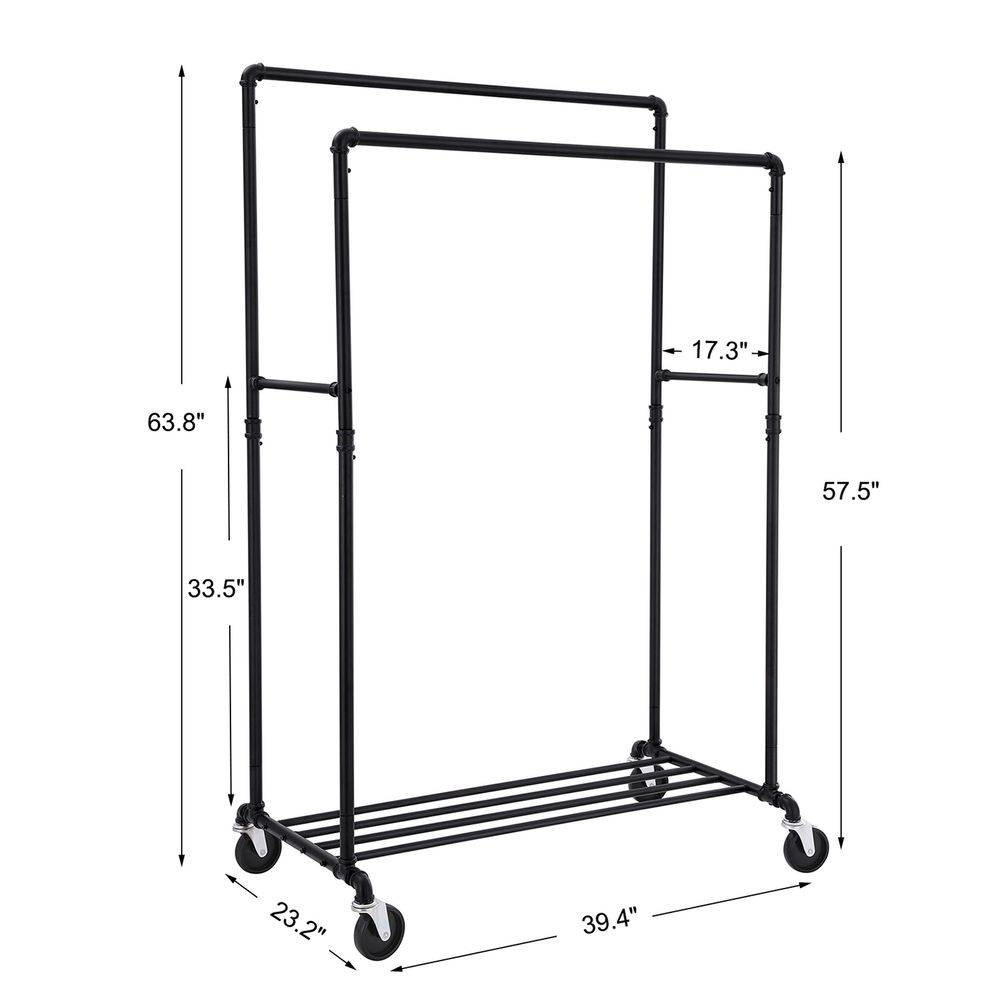 • For exceptional built quality, high weight capacity and convenient mobility - look no further than SONGMICS Industrial Pipe Double Rail Garment Rack.