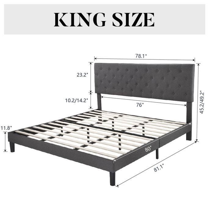 King Size Adjustable Height Grey Linen Tufted Low Profile Platform Bed King Size Adjustable Height Grey Linen Tufted Low Profile Platform Bed King Size Adjustable Height Grey Linen Tufted Low Profile Platform Bed King Size Adjustable Height Grey Linen Tufted Low Profile Platform Bed King Size Adjustable Height Grey Linen Tufted Low Profile Platform Bed