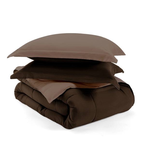 Elevate your bedroom or guest room with this classic Full/Queen 3-Piece Microfiber Reversible Comforter Set Light / Dark Brown. We love that this set comes in a range of colors, so you can find just the right look for your space. It’s also reversible, so you can switch up your look with ease. All pieces are made of 100% microfiber, which is lint-free, non-pilling, and resistant to wrinkles; they’re also machine washable, so keeping everything fresh and clean is a breeze. The comforter and shams are filled with 5.31 oz. fill weight polyester in a solid hue with a baffle box weave.
