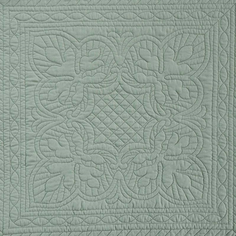 This King/Cal King Size 3 Piece Reversible Scalloped Edges Microfiber Quilt Set in Seafoam is perfect as a layering piece or as an alternative to your comforter for a charming country look. The set flaunts a classic stitch pattern with scalloped edges that adds an elegant touch to any bedroom.