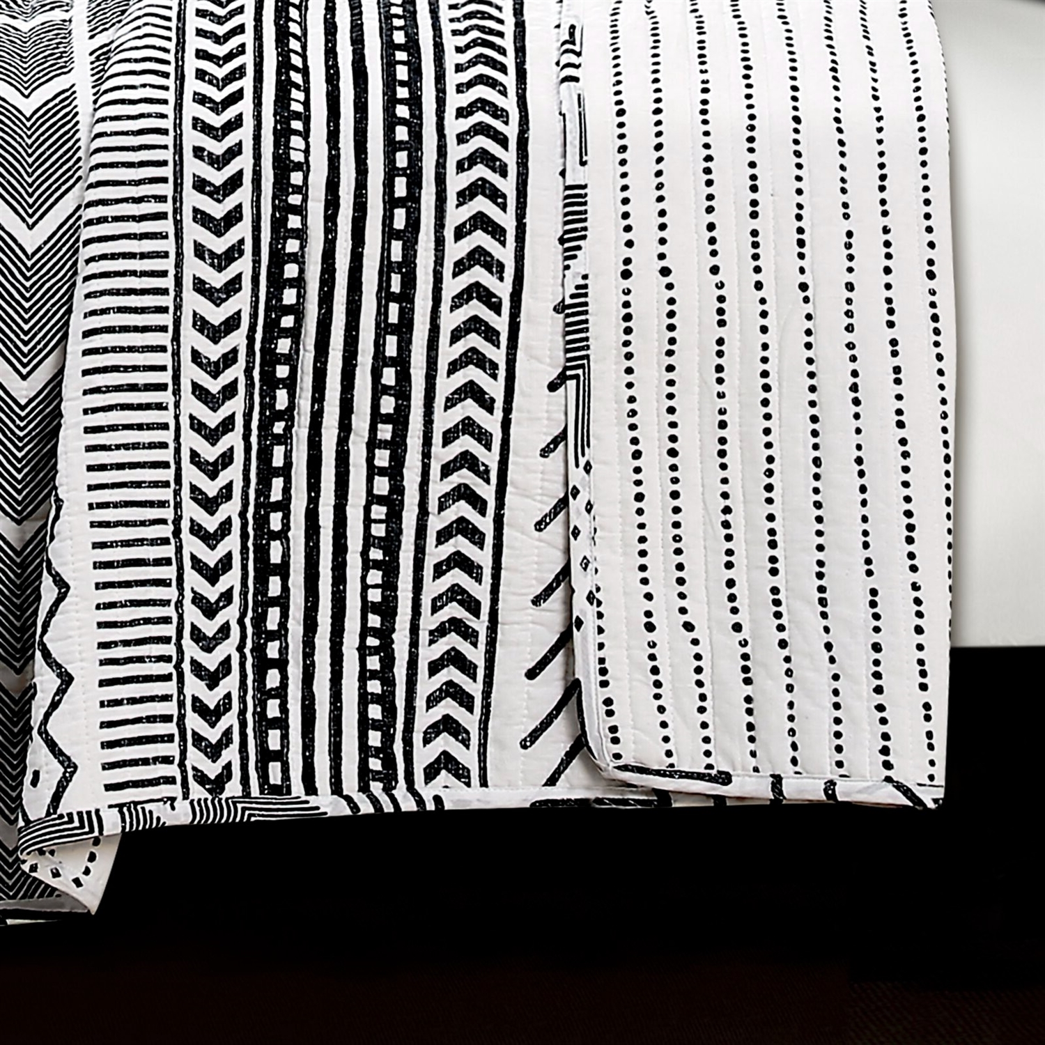 King 3 Piece Scandinavian Style Chevron Black White Reversible Cotton Quilt Set