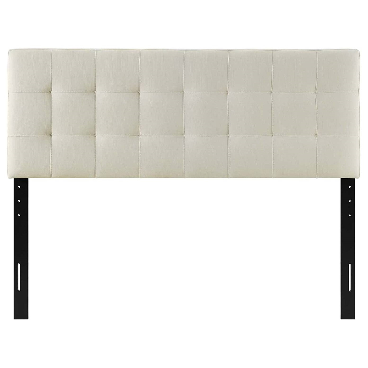 Add elegance to your bedroom with this Full size Ivory Fabric Upholstered Tufted Headboard. Designed with just the right amount of grace, Emily is made from fiberboard, plywood, and fine polyester upholstering for a construction that is both lightweight and long-lasting. Perfect for contemporary and modern bedrooms, sleep soundly with a piece that imparts a sense of tranquility amidst an impressive backdrop of style. Fits full size beds. Set Includes: One - Full Headboard Product Dimensions: Overall Product Dimensions: 3.5"L x 56"W x 45 - 52.5"H Floor to bottom of Headboard: 23 - 30.5"H.