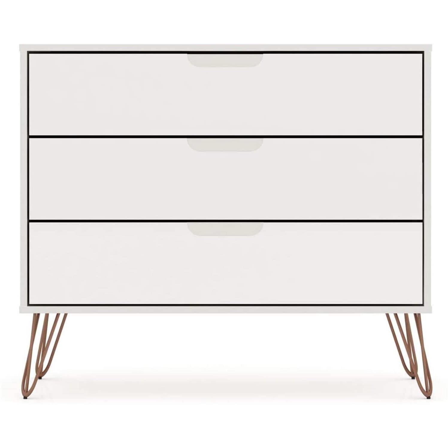 Bring that relaxed flair with this Modern Scandinavian Style Bedroom 3-Drawer Dresser in Off-White Finish. The dresser measures 35. 24" L in. x 17. 52" W in. x 28. 86" H in. and weighs 65. 56 lbs. This dresser is crafted from durable MDF and metal. A perfect piece for your living space, the dresser has three spacious pullout drawers to store clothing and other essentials. Features a stylish Midcentury design with splayed hairpin metal legs. The spacious table top is a great place for a lamp, a vase, framed photos, and travel trinkets. Manhattan Comfort, a developing furniture company based in New York City, began with the goal of bringing modern and stylish furniture to living rooms nationwide. Gradually becoming a household name, Manhattan Comfort creates quality furniture through a production process that ensures each piece created is flawless. We highly value our customers' satisfaction, and we are committed to continually offering contemporary high-quality furniture at affordable prices.