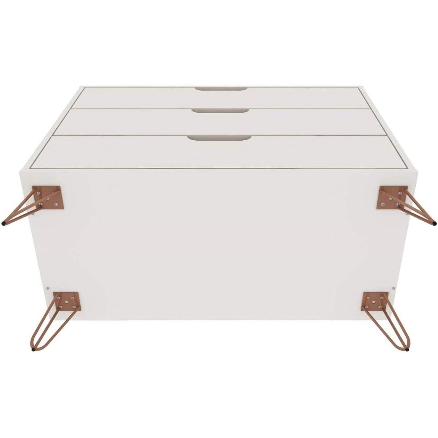 • Low-Rise Design with Splayed Hairpin Metal Legs. Features Three Pullout Drawers with a Simple Gliding Mechanism