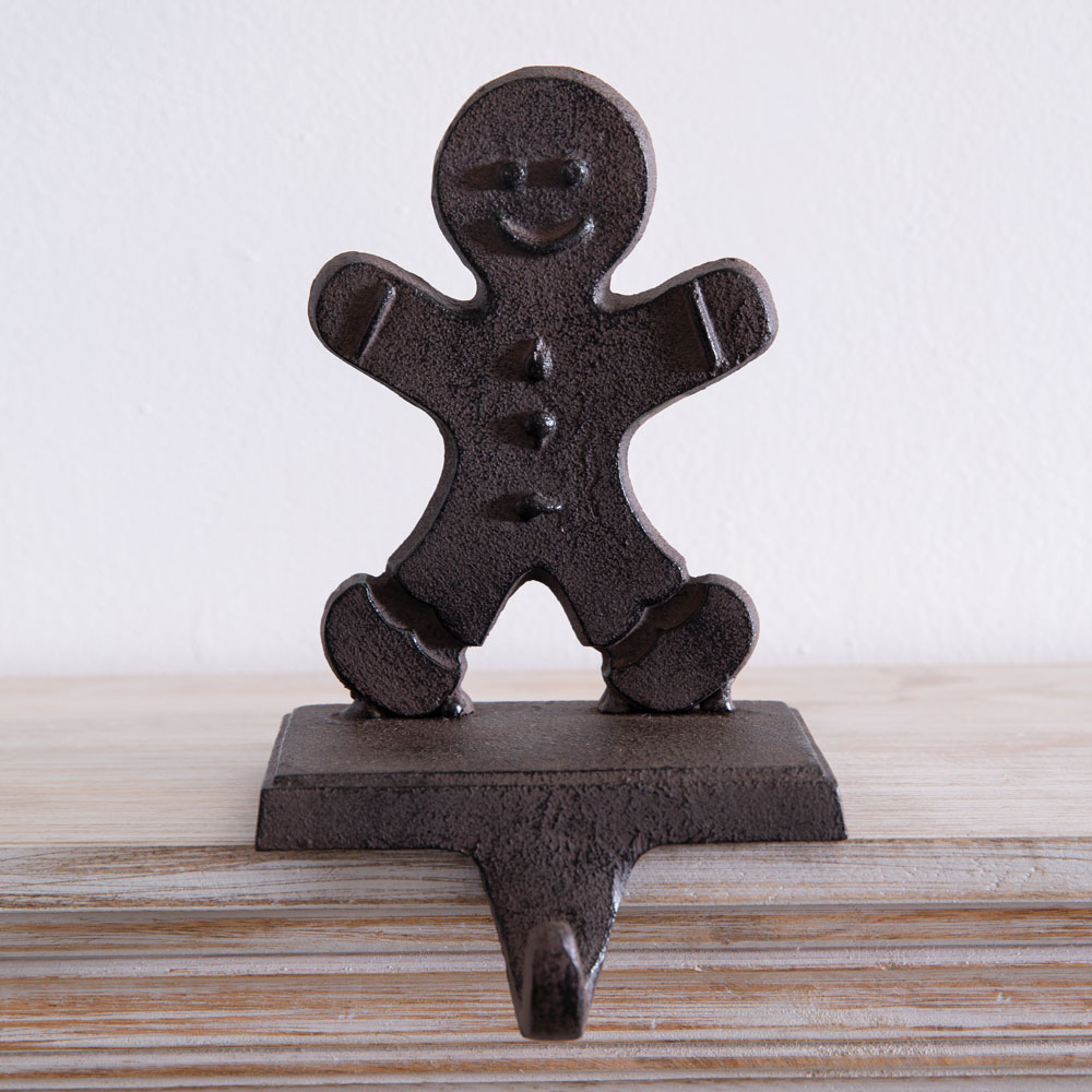 Rustic Cast Iron Gingerbread Stocking Holder for Christmas Decor