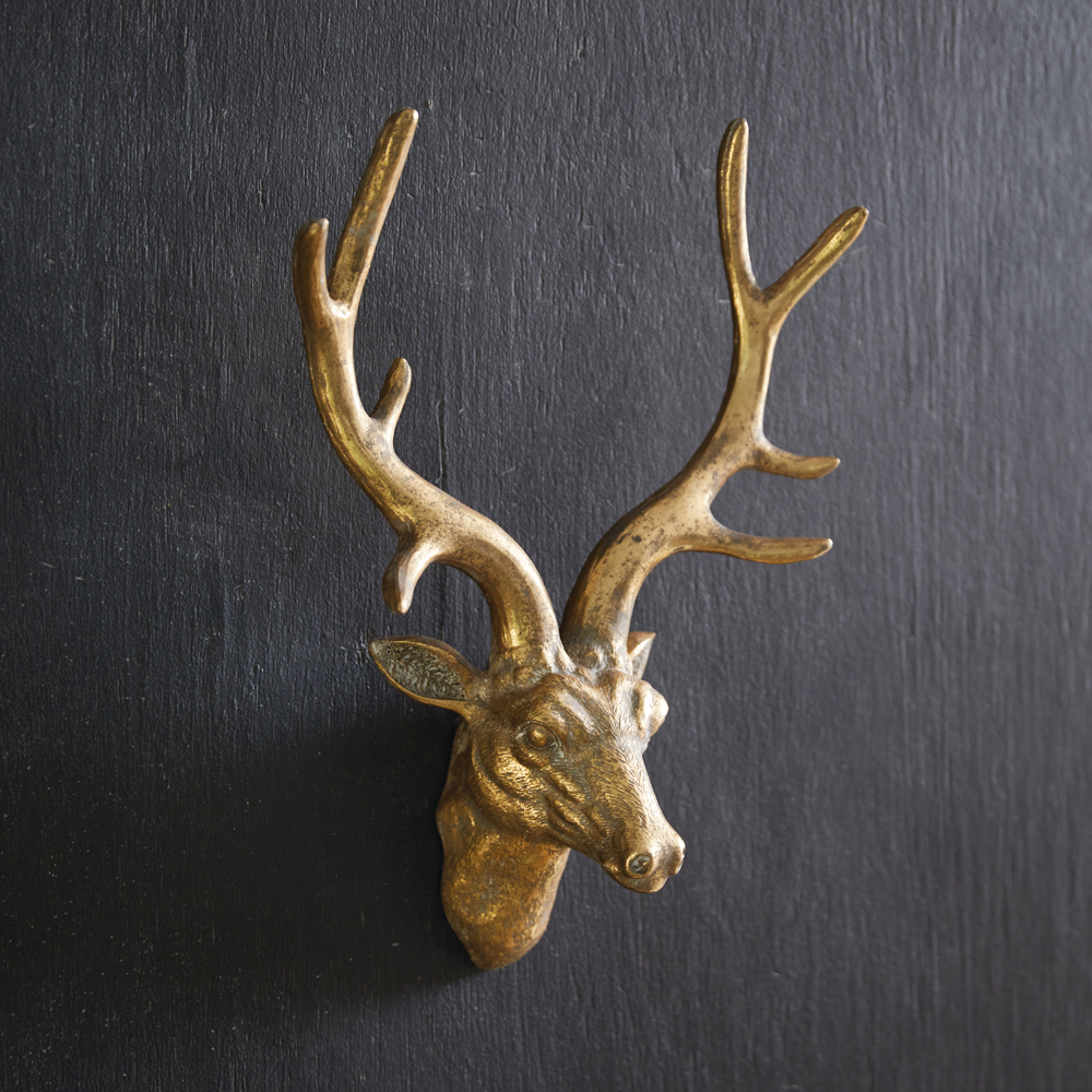 Classic taxidermy takes a twist. This unique deer head gives a luxurious quality to a room with its golden colors. Item is made of resin. To hang, use its keyhole hanger.