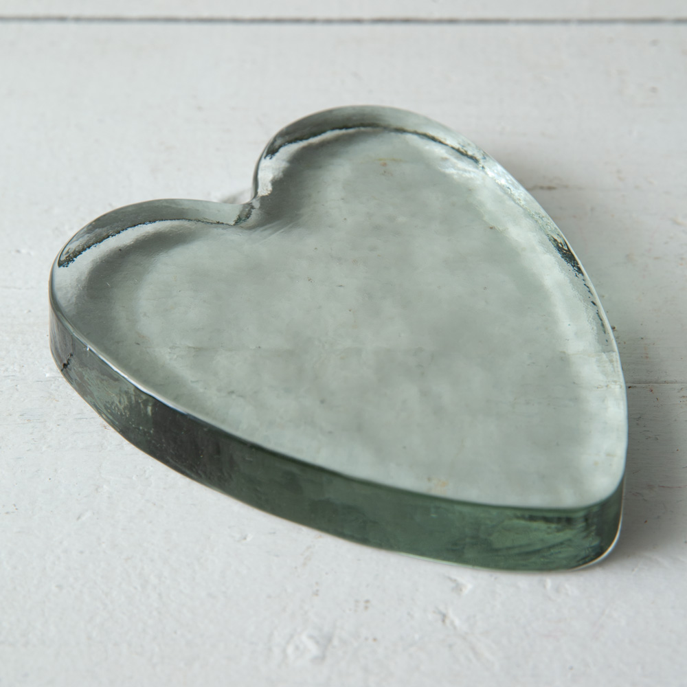 Our heart is exploding with love for this Blocked Glass Heart. The organic handmade nature of the glass is a unique and charming feature. Use as a paperweight on a desk.