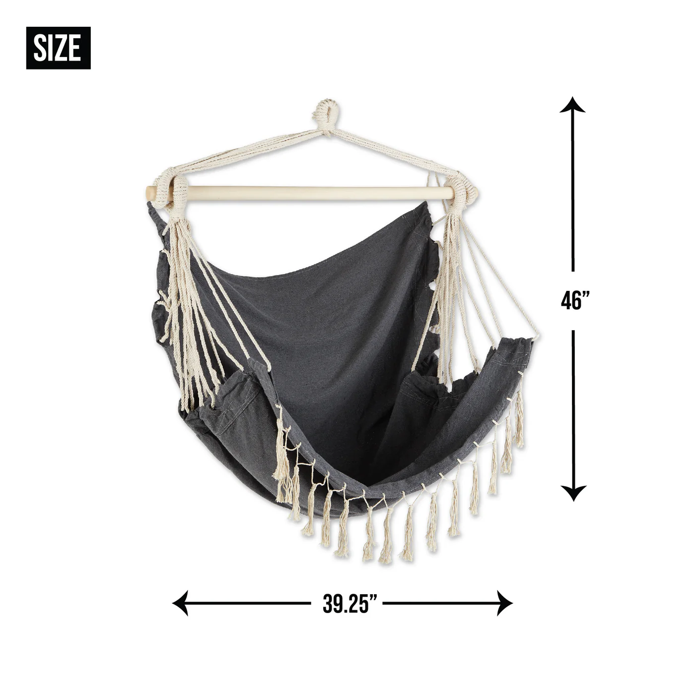Striped Hammock Chair with Fringe Trim - Perfect for Summer